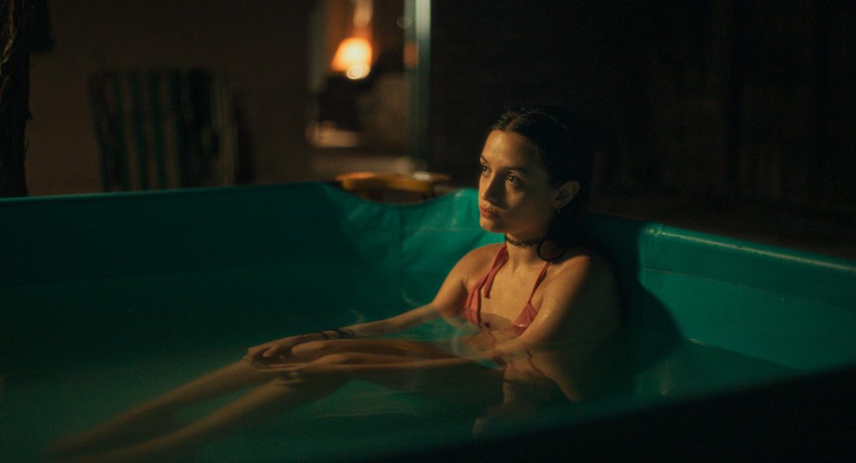 Un detalle de la película que atrapa es la cantidad de tomas en las que Natalia aparece junto a Jose y su melliza. Siempre las tres. Juntas. A la misma altura. Tanto que sus cabezas parecen pegadas, un mismo organismo, perturbadoramente unidas. Laura Casabé habló sobre esta búsqueda casi sensorial en la que se intenta representar un “coro de brujas”. En varias escenas hablan muy bajo, en susurro. Como en la de la pileta, donde observan a Diego quien se está por tirar al agua desde la torre que funciona como plataforma de salto y llega Silvia. Apenas la ven comienzan a susurrar sobre lo fea que es y cuán chato tiene el culo.